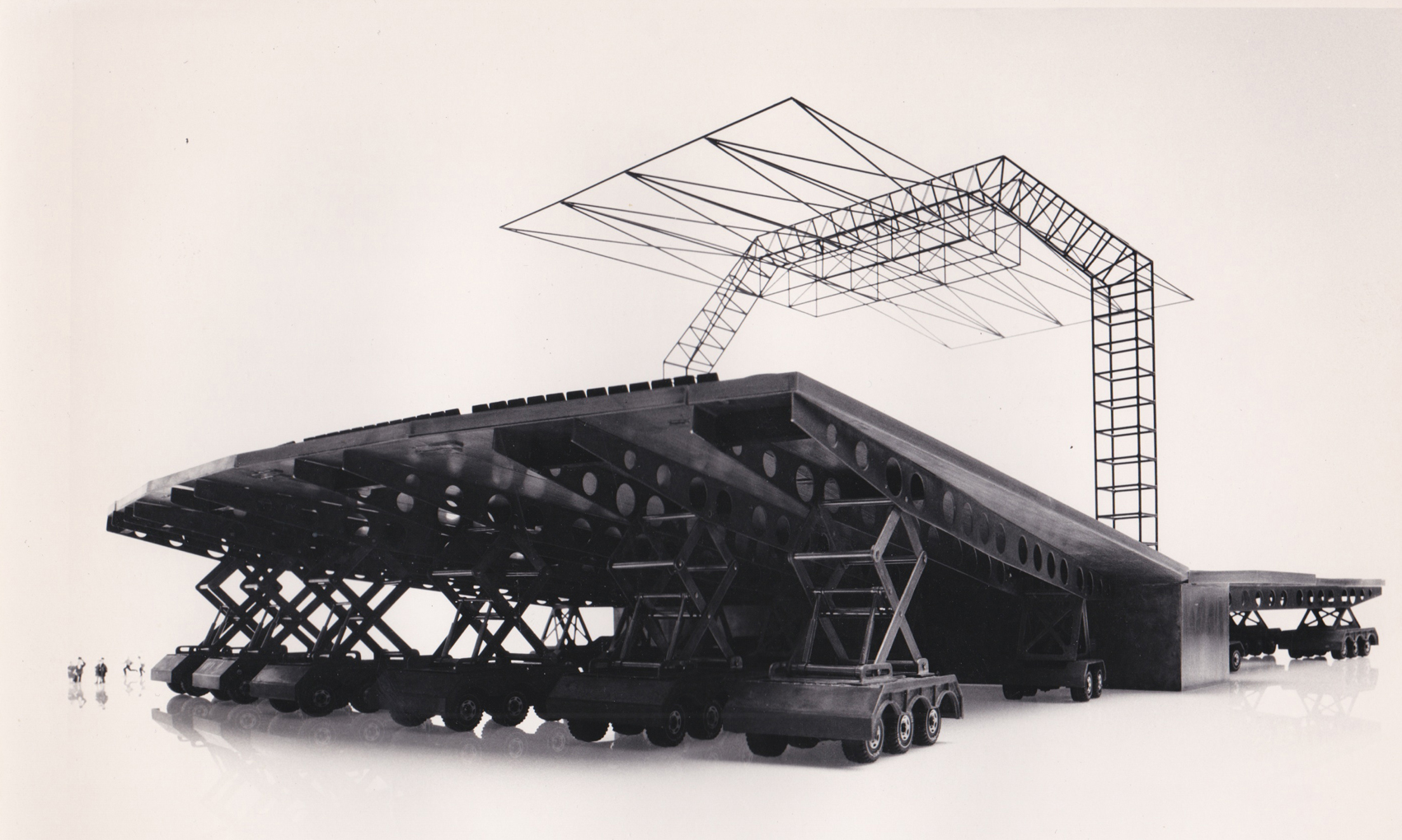 The design for a mobile opera, inspired by intendant Maurice Huisman of the Dutch National Opera, was later adapted into a design for a temporary concerthall, assigned by the NV Concertgebouw, Amsterdam (1982)
