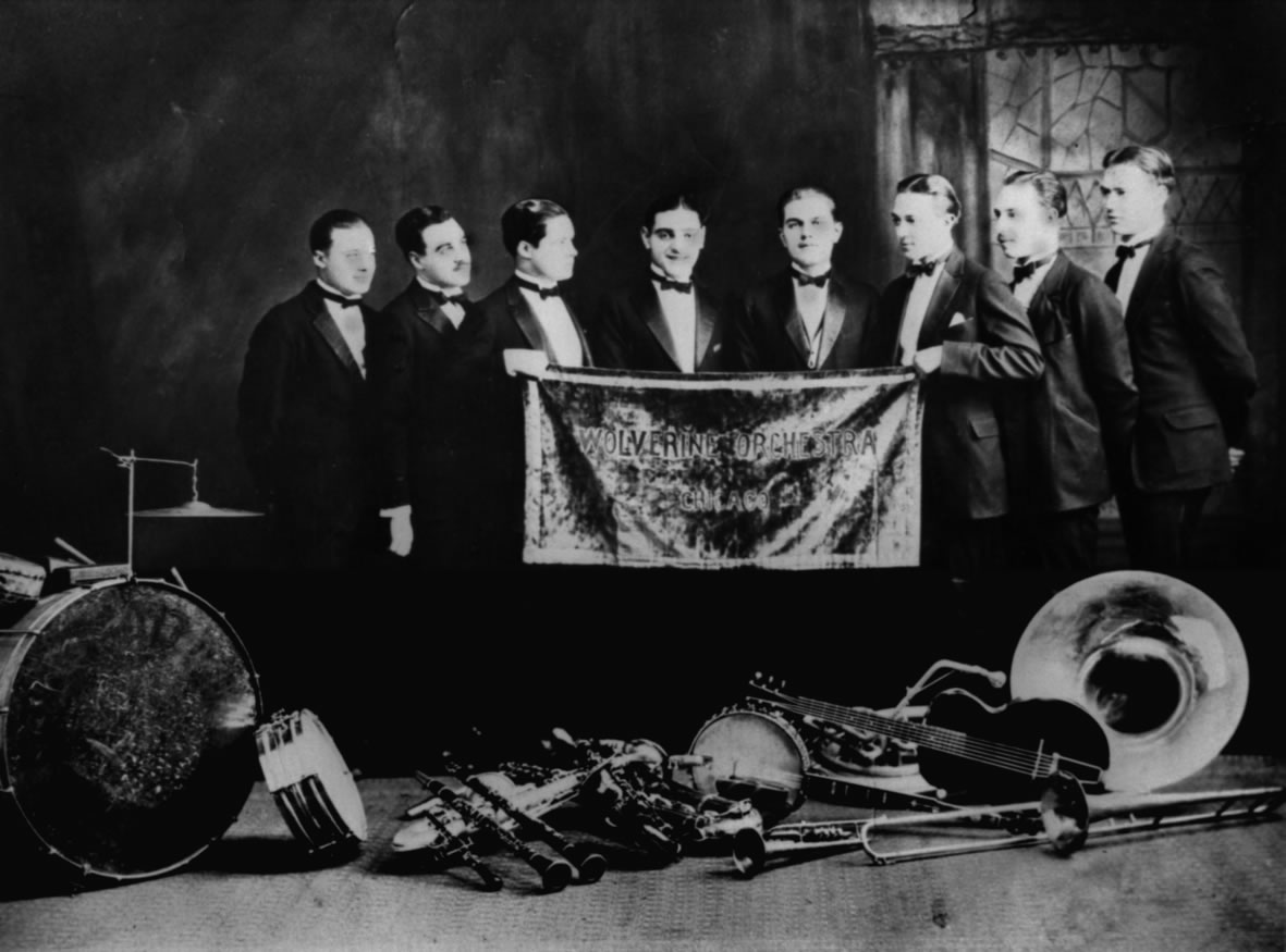 Wolverine Orchestra with Bix Beitherbecke (3d from left), 1924