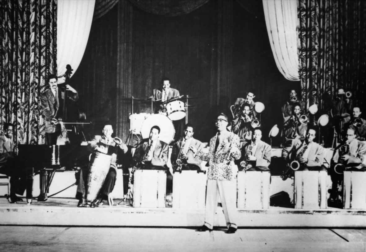 The suffering face of jazz is one of the Icons of American cultural history, the sweating artist, sending up acoustic smoke signals from the basement floor, the block protester, accusing the whites of art theft, and for whom the theory of acculturation -the cultural changes bored on the cultural contacts by which jazz came into being - nothing but a scientific safeguard of spiritual theft. But there is also clown's mask in jazz, the 'minstrel man', who blackens himself and with humorous gesturing, offers the public that which it deserves: the parody of black eccentricity, jazz as a comical turn In this respect, Dizzy Gillespie always displayed a certain schizophrenic. He was a rebellious entertainer who made even the craziest music successful. Gillespie was like his colleagues of the 'forties', eccentric in appearance and conduct but never arrogant. And he didn't brandish his social commitment like a benner 'Artists are always in the forefront of social change. But we didn't mount the stage to give speeches or to say 'let's play 8 beat social protest! Amongst the bebop players Gillespie was probably the most disciplined, the one who made the new way of playing style, who could not only play the most complex improvisations, but could also create original and virtuoso arrangements for big bands. And using elements of South-American and African music from Bosse Nova and Cuban rhythms, which he incorporated into his arrangements, he laid the foundations of the first great vogue in Latin-jazz and Afro-jazz.