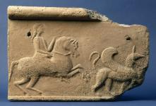 This is a print of a plaster cast of a Roman copy of a bronze Greek original sculpture dating from the fifth century BC. |