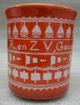 Beker vervaardigd door Kunstaardewerkfabriek Regina voor bekerwedstrijden van de Goudse Roei- en Zeilvereniging in 1968 |